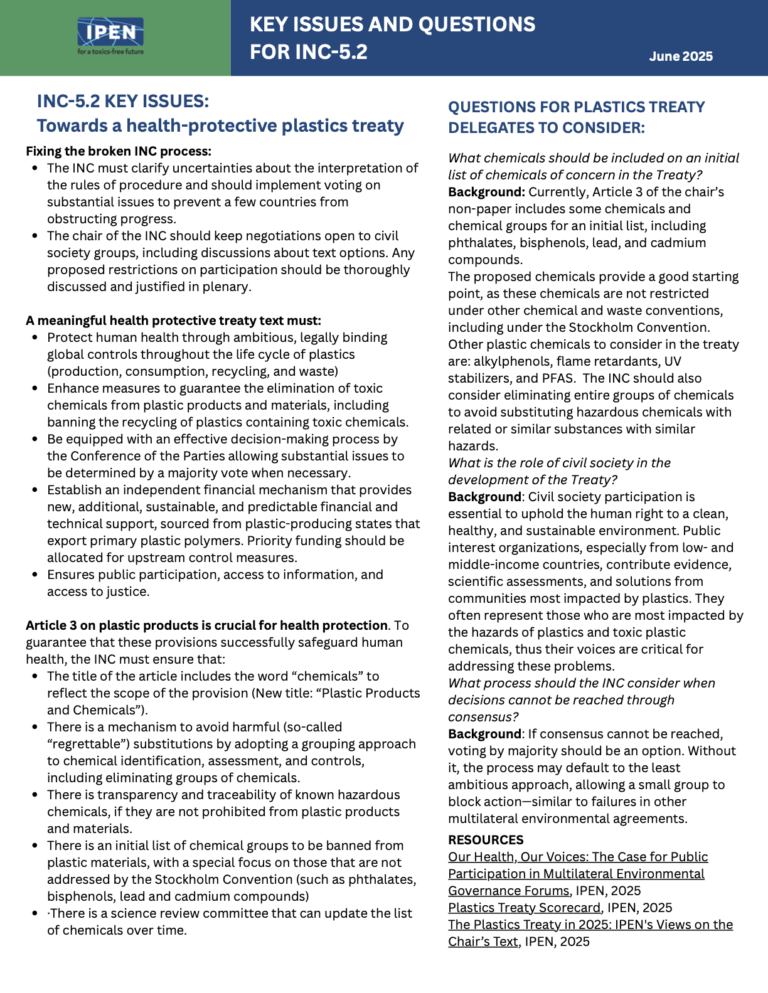 A global process to create a Plastics Treaty is underway, to address the plastic pollution crisis, including the health and environmental threats from toxic chemicals throughout the plastics life cycle.