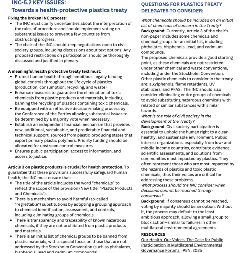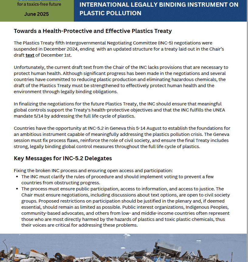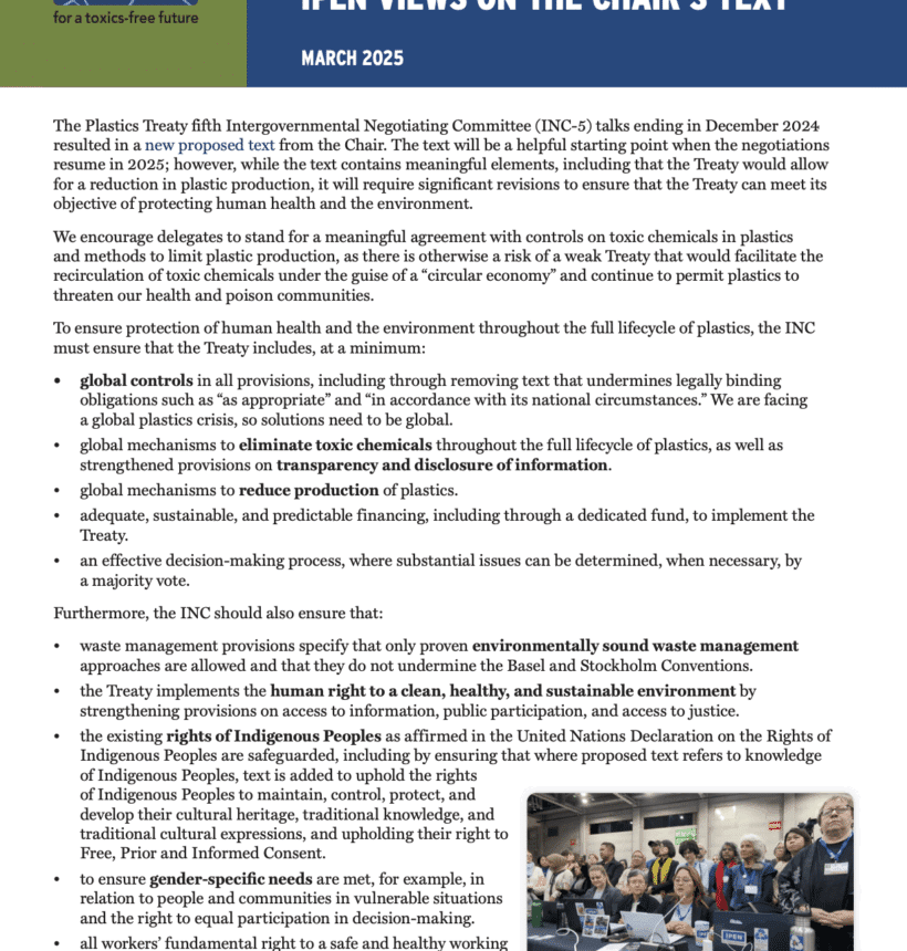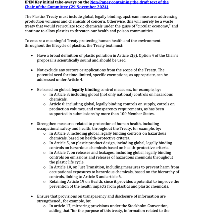 Plastics Treaty IPEN Co-Chair’s Letter to Delegates Attending the Heads of Delegations Meeting of the Plastics Treaty INC